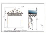 Козырёк выполнен из стали с элементами ковки. Крыша козырька имеет приплюснутый дугообразный вид.